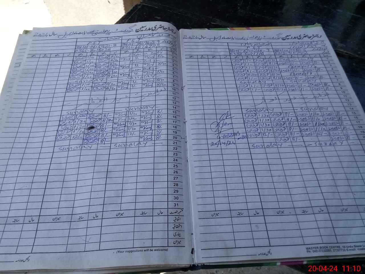 | CNIC | Full Name | Designation | R/C | Absence During Last Calender Month |