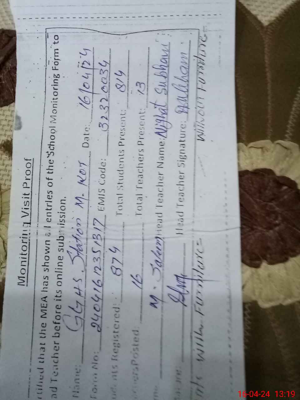 | EMIS Code: 32320034 | Name of School: GGHS MAHMOOD KOT STATION | |||