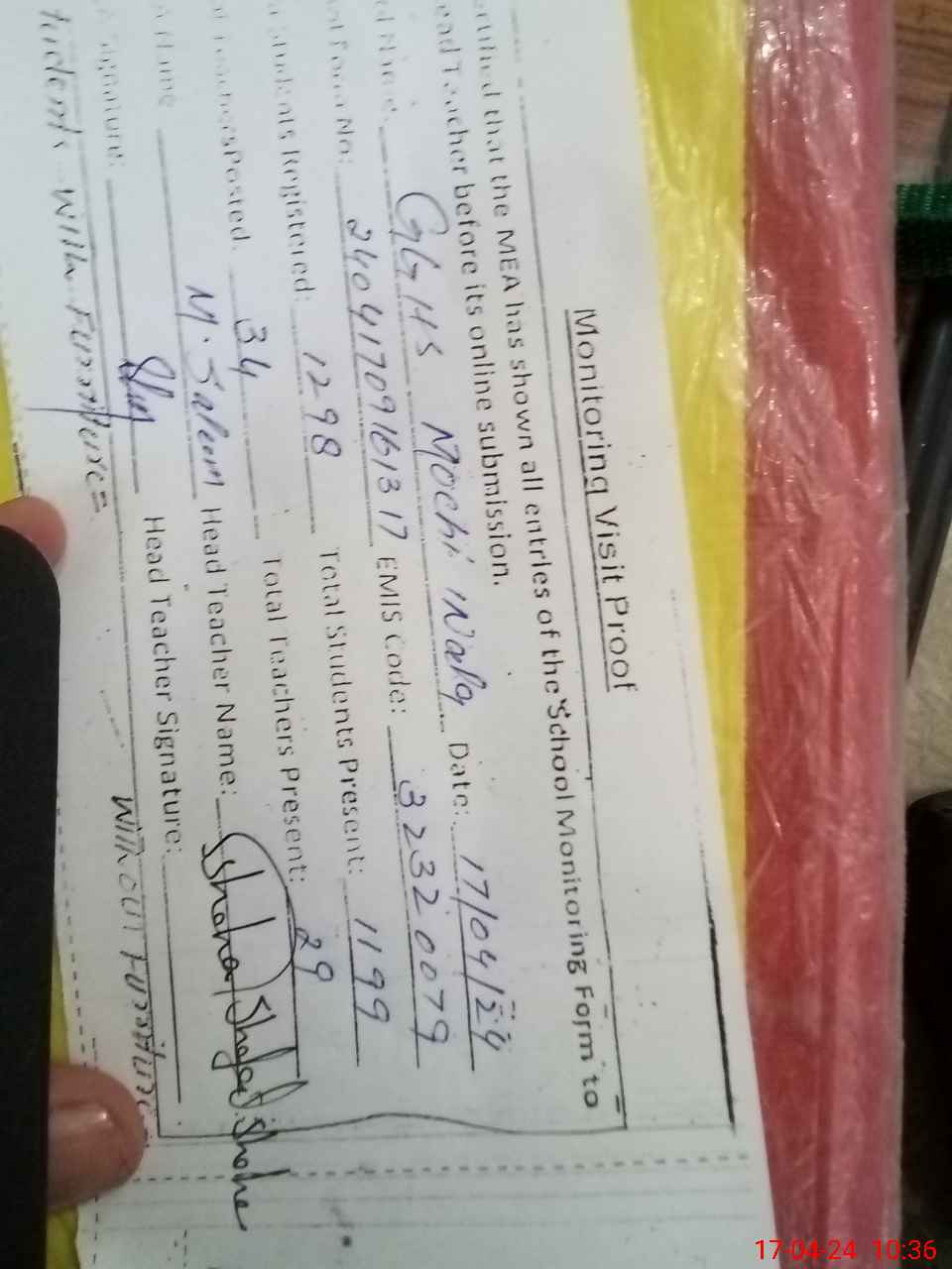 | EMIS Code: 32320079 | Name of School: GGHS MOCHI WALA | |||