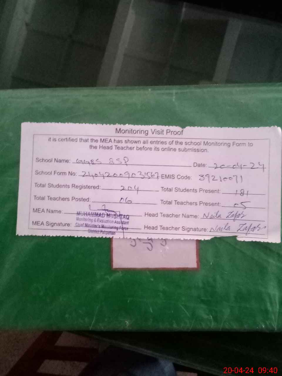 | Certified that this School was Inspected by the Undersigned MEA/DMO Today and the Information Stated Above is as Per Record. | |||||