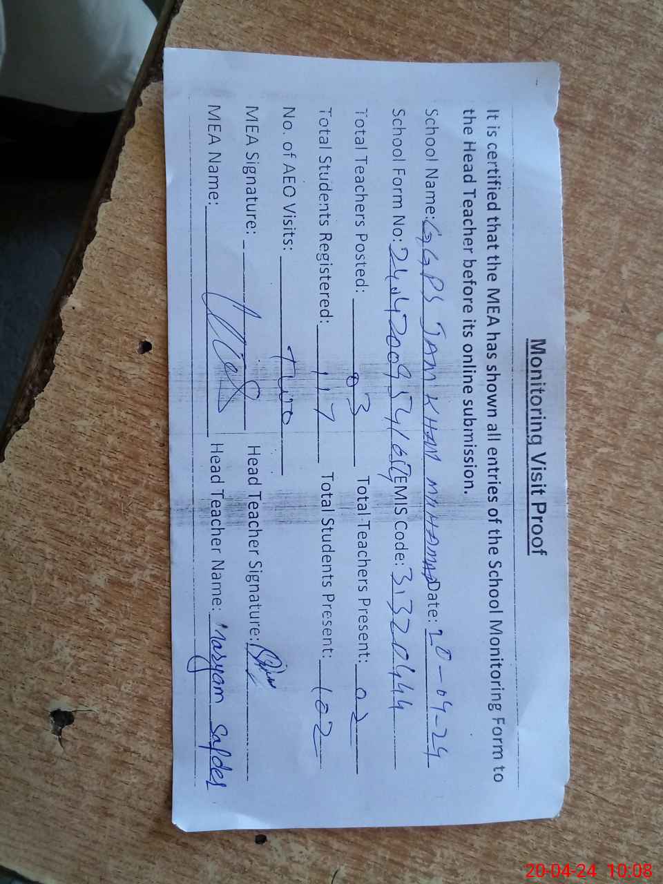 | EMIS Code: 31320444 | Name of School: GGPS JAM KHAN MUHAMMAD | |||