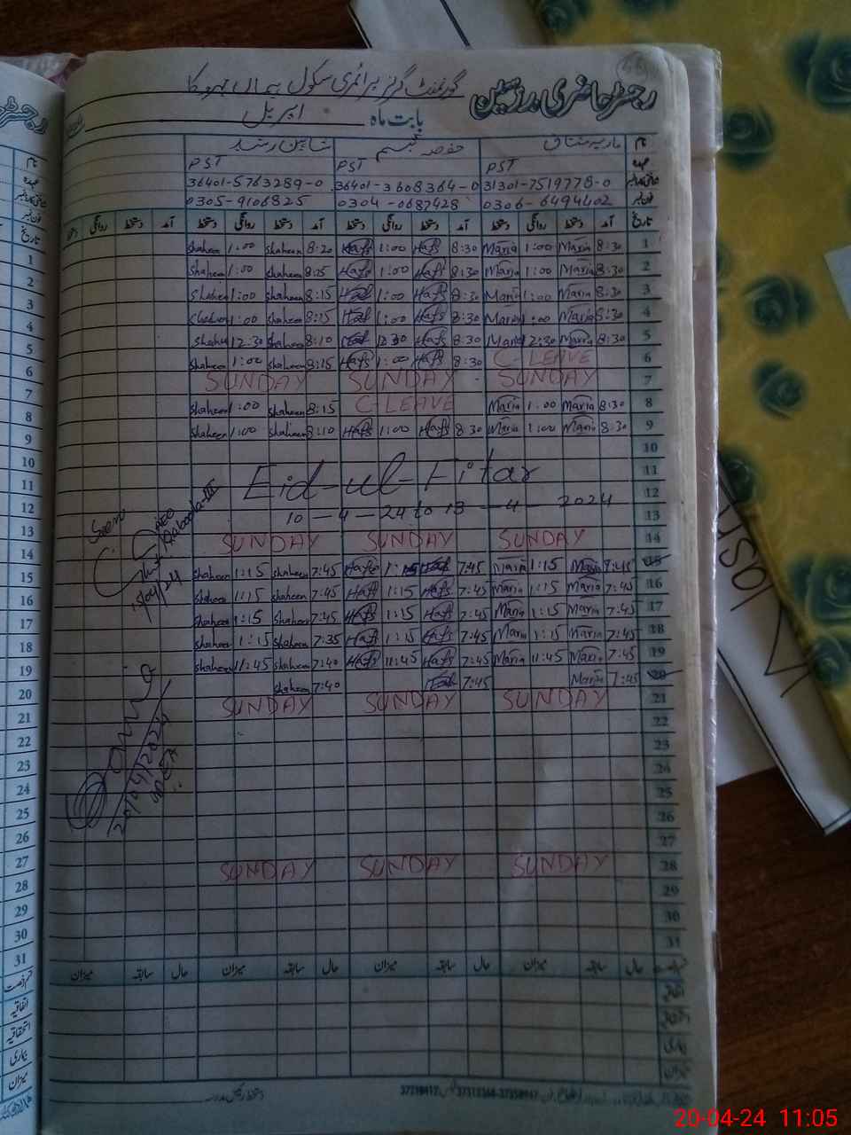 | Name: MA**** MU**** Designation: (School Headmaster's/Headmistress's) PST Phone/Cell Number: 03**** |