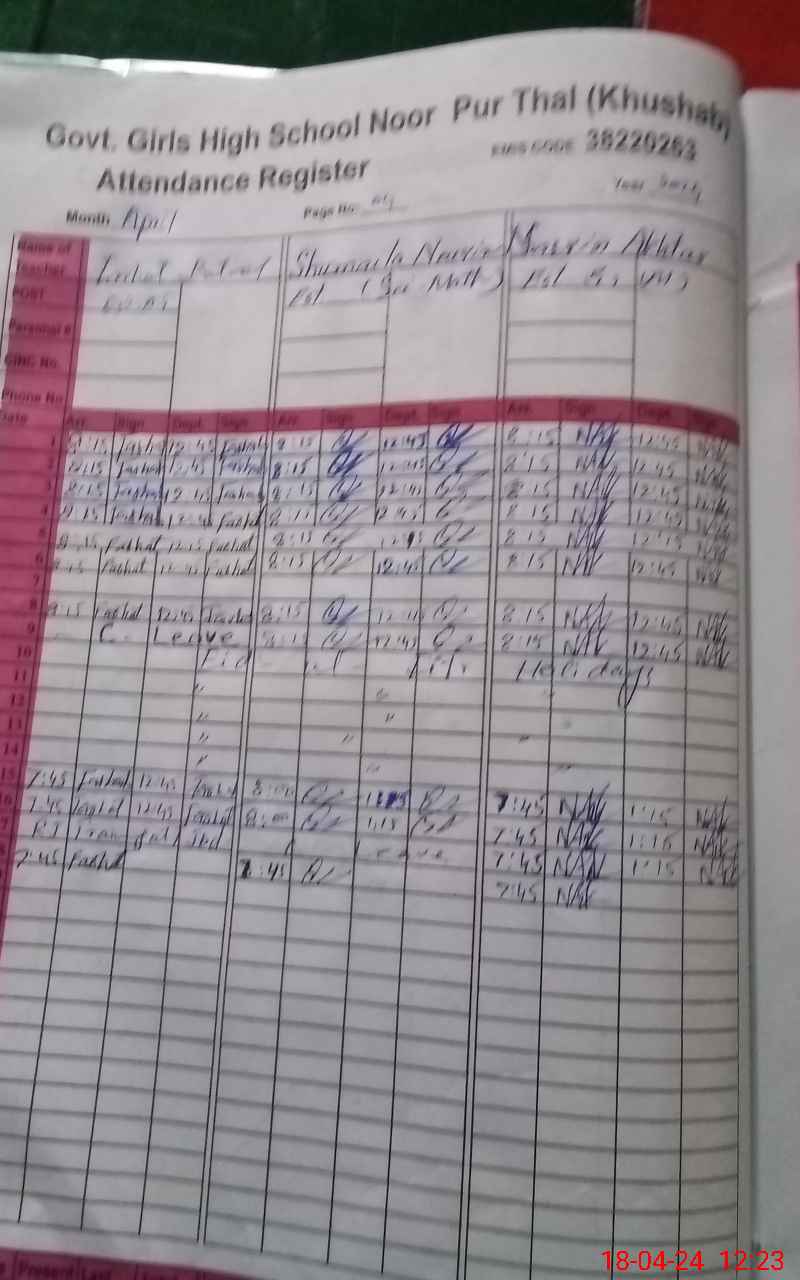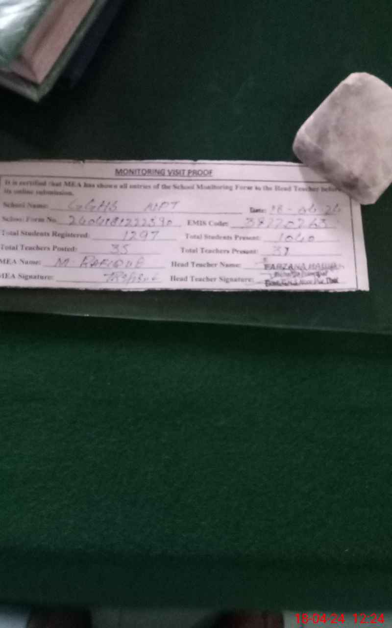 | EMIS Code: 38220263 | Name of School: GGHS NOOR PUR THAL | |||