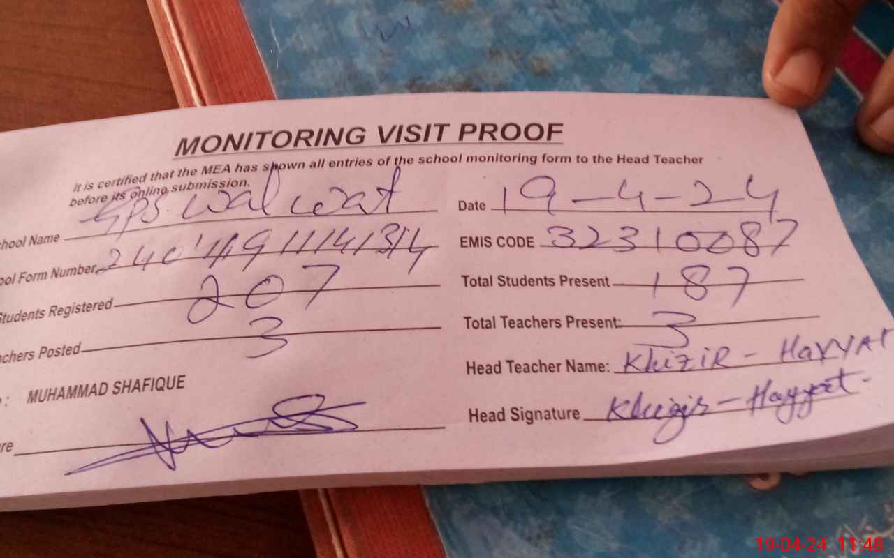 | EMIS Code: 32310087 | Name of School: GPS WALWAT | |||