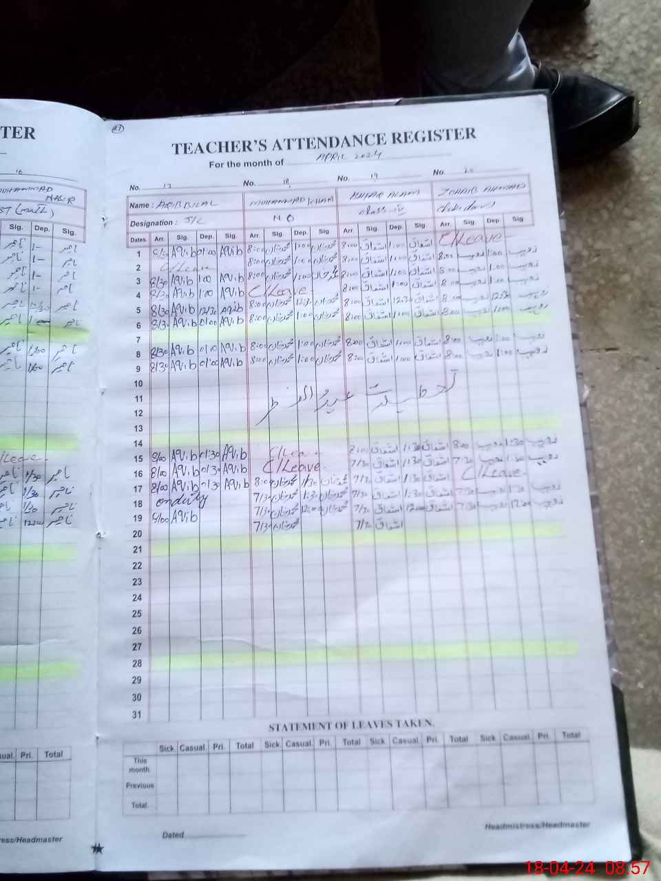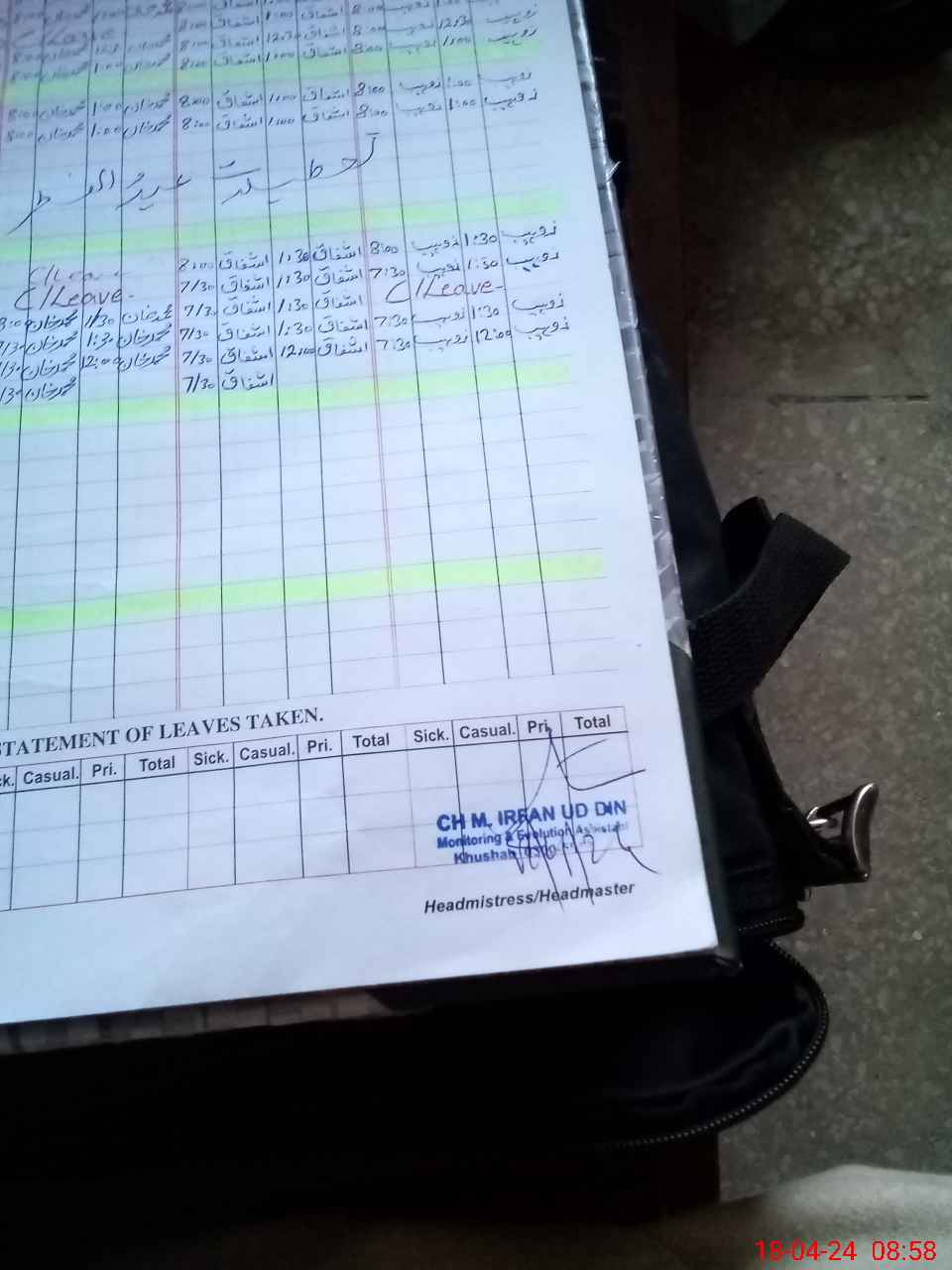 | CNIC | Full Name | Designation | R/C | Absence During Last Calender Month |