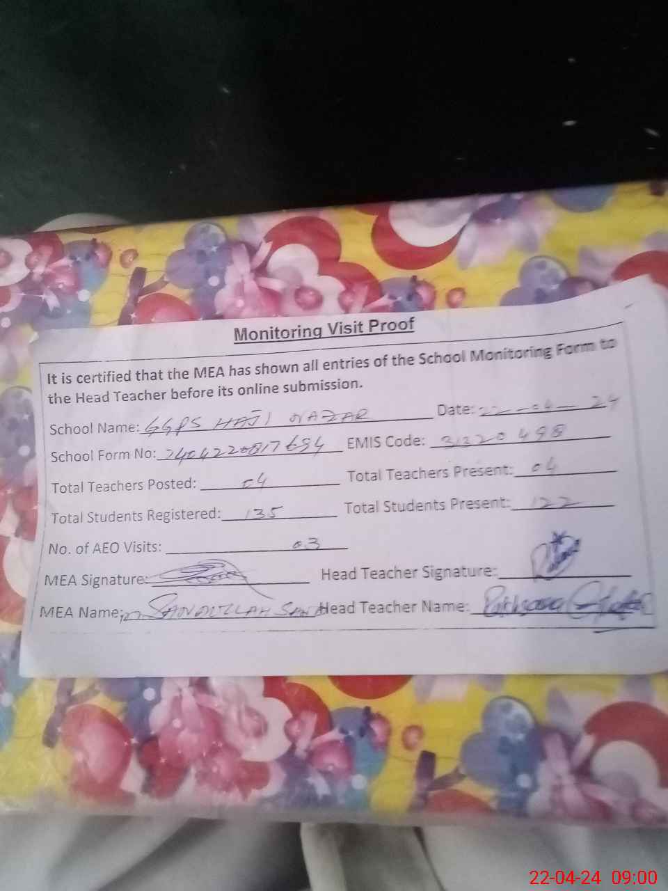 | EMIS Code: 31320498 | Name of School: GGPS HAJI NAZAR | |||