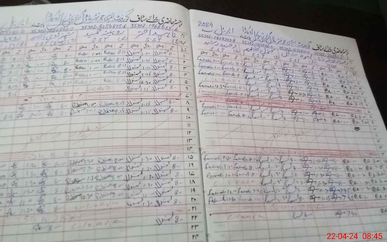 | CNIC | Full Name | Designation | R/C | Absence During Last Calender Month |