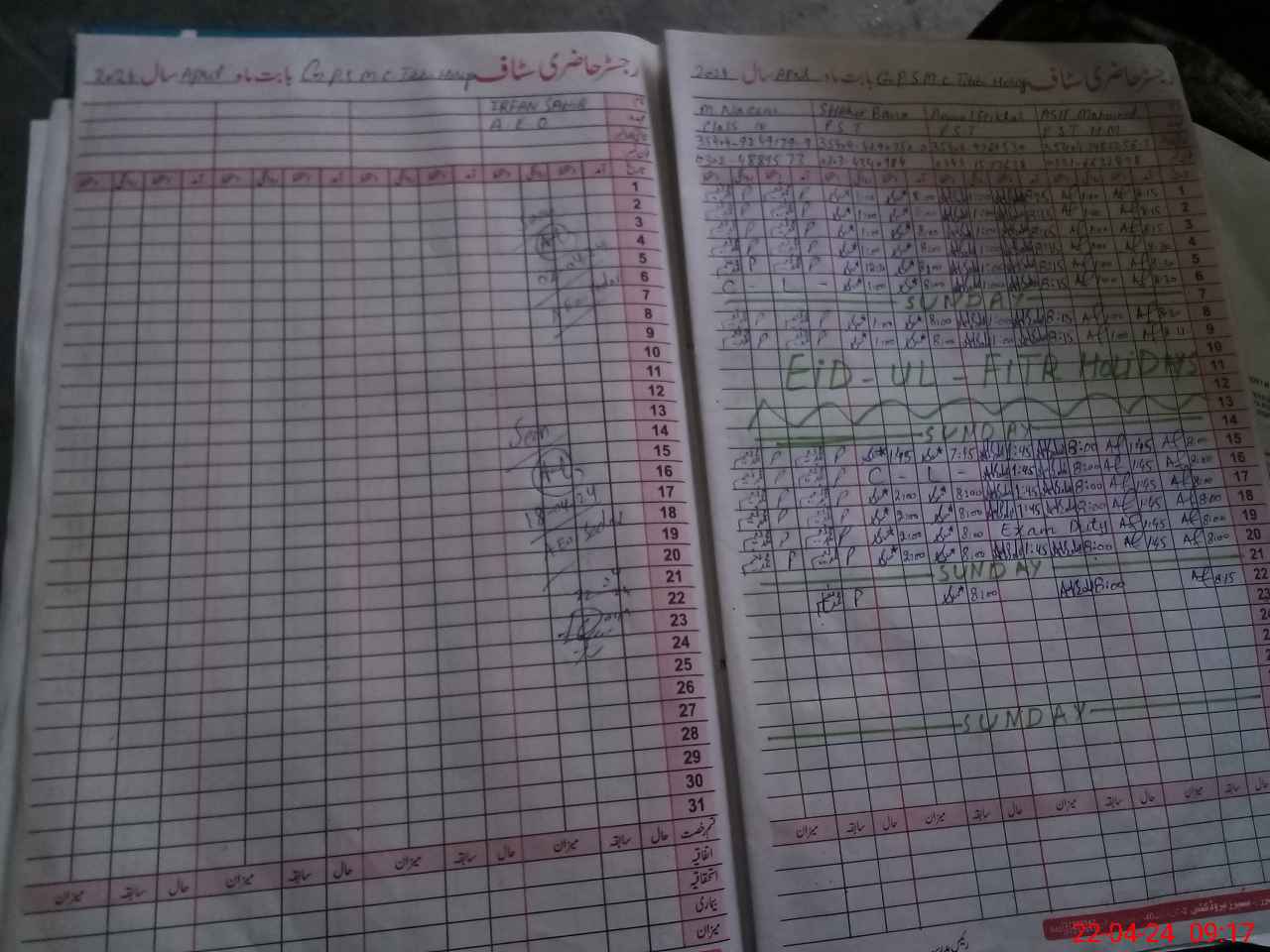 | CNIC | Full Name | Designation | R/C | Absence During Last Calender Month |