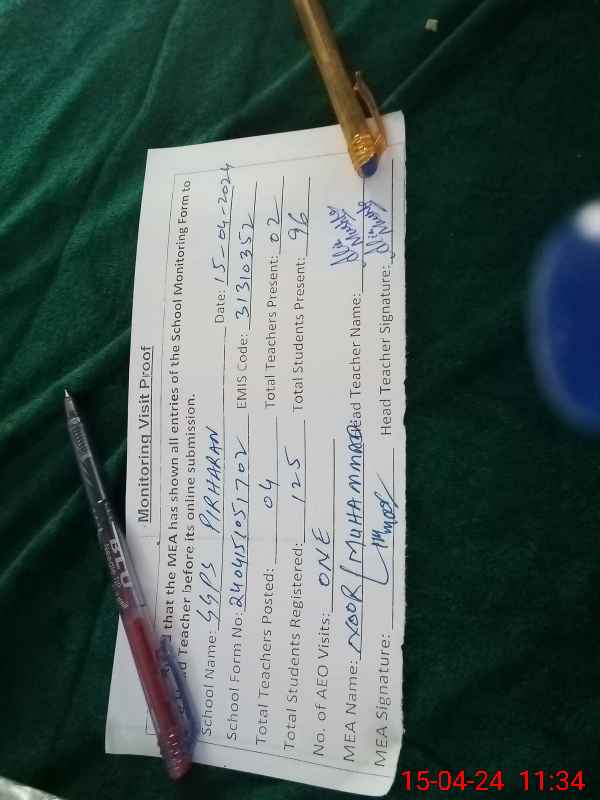 | EMIS Code: 31310352 | Name of School: GGPS PIRHARAN | |||