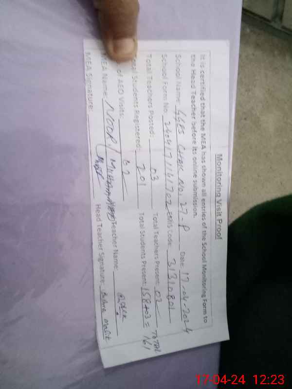 | Attendance Register | Head Teacher | MEA with School | Visit Proof |