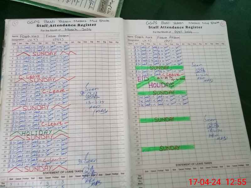 | 31**** | Fa**** Ak**** | 1 | 2 | 0 | 0 | 0 | 0 | 0 | 0 | 0 | 2 | Absent (Un-Authorized) | |
