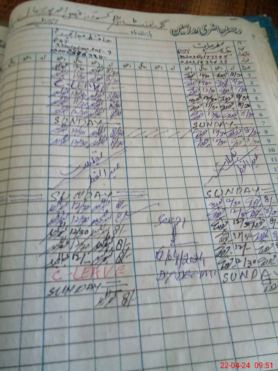 | CNIC | Full Name | Designation | R/C | Absence During Last Calender Month |