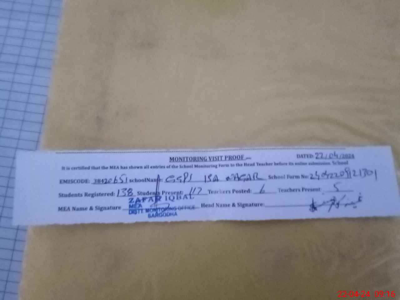 | EMIS Code: 38420651 | Name of School: GGPS ISSA NAGAR | |||