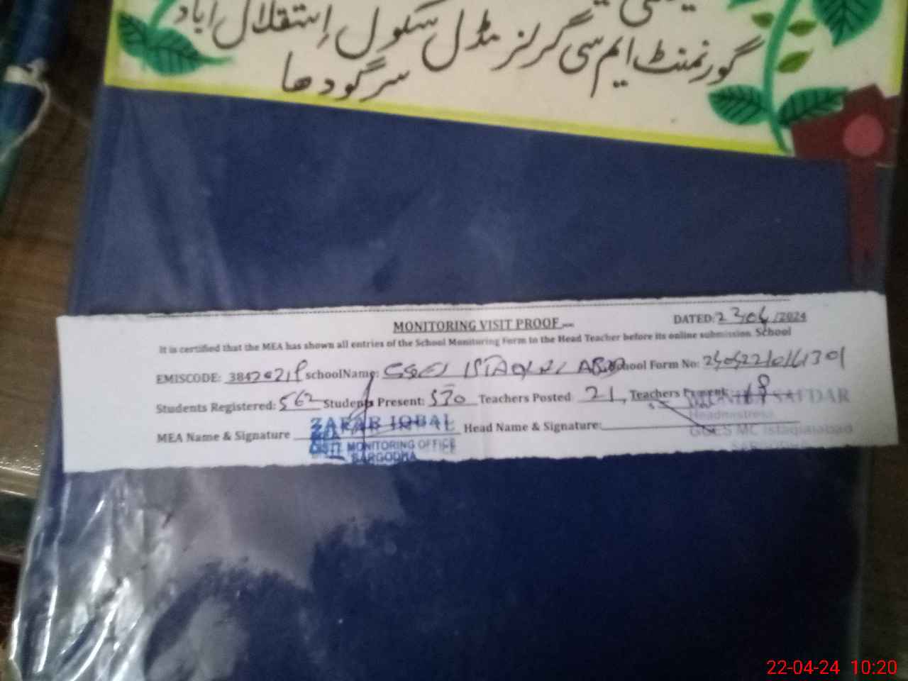 | EMIS Code: 38420219 | Name of School: GGES MC ISTAQLAL ABAD SARGODHA | |||