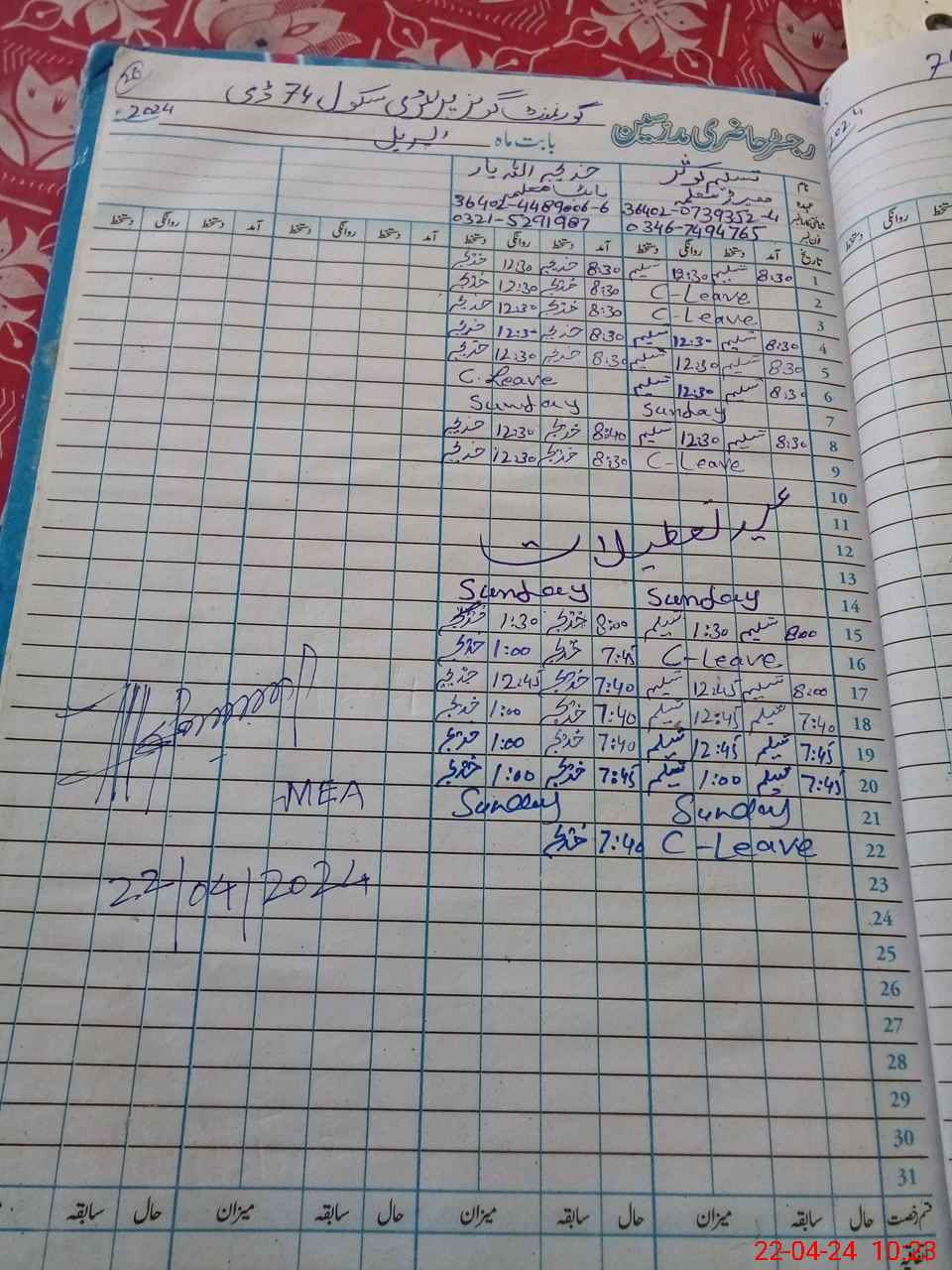 | Name: Ta**** Ka**** Designation: (School Headmaster's/Headmistress's) PST Phone/Cell Number: 03**** |