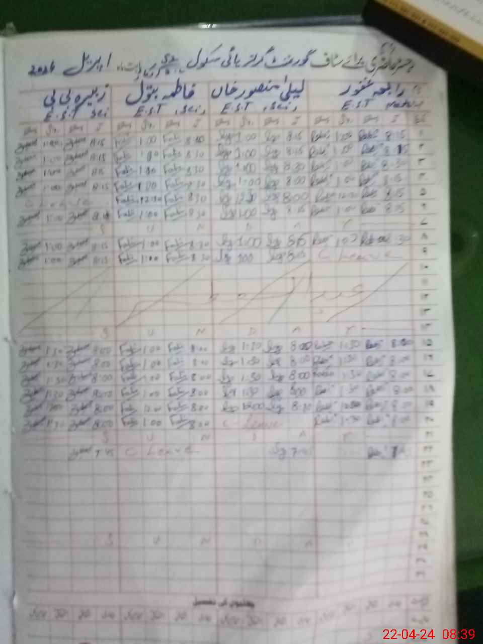 | No. of Students Present - Female | 4 | 0 | 22 | 47 | 61 | 52 | 41 | 63 | 75 | 94 | 131 | 99 | 132 | 821 | ||