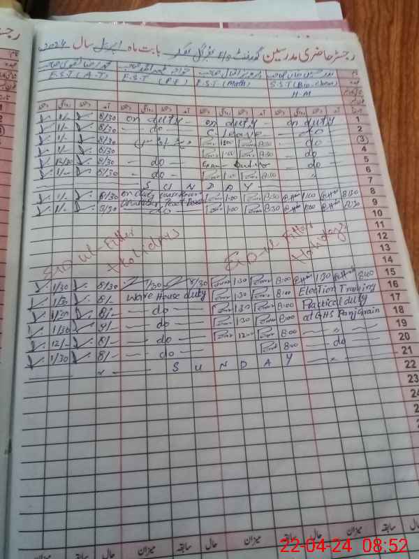 | 12**** | Na**** Hu**** | SST | Regular | 0 | 0 | 0 | 0 | 0 | 0 | 0 | 0 | 0 | Exam Duty |