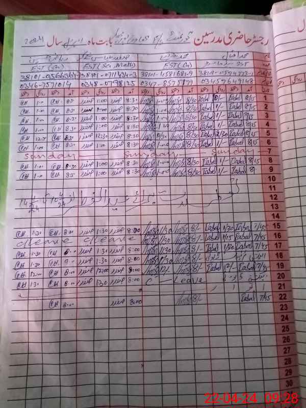| Name: MU**** IQ**** Designation: (School Headmaster's/Headmistress's) SST Phone/Cell Number: 03**** |
