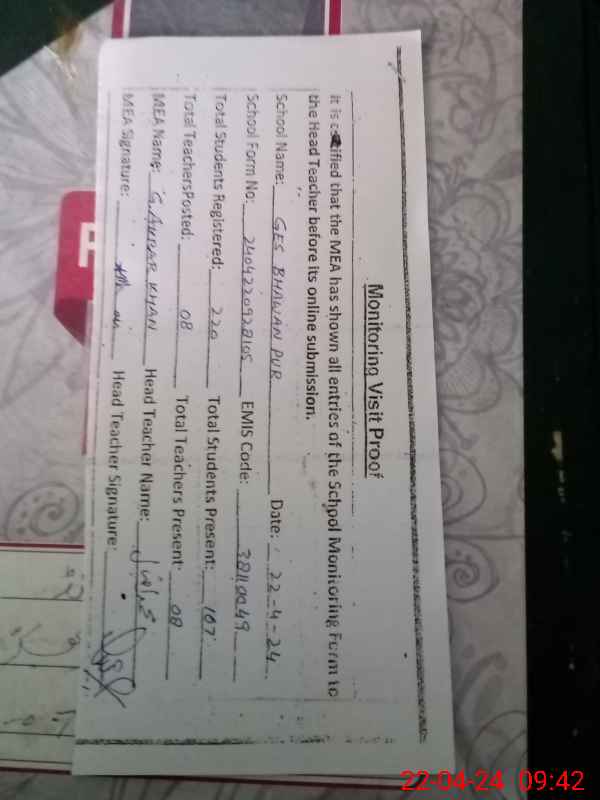 | EMIS Code: 38110049 | Name of School: GES BHAWANPUR | |||