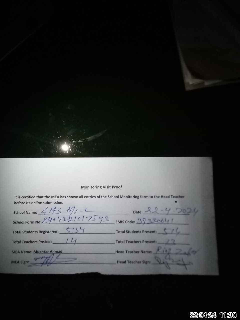 | EMIS Code: 39330041 | Name of School: GHS CHAK 8/1-L | |||