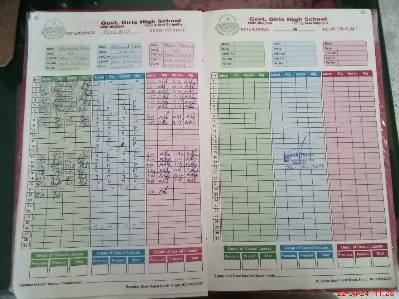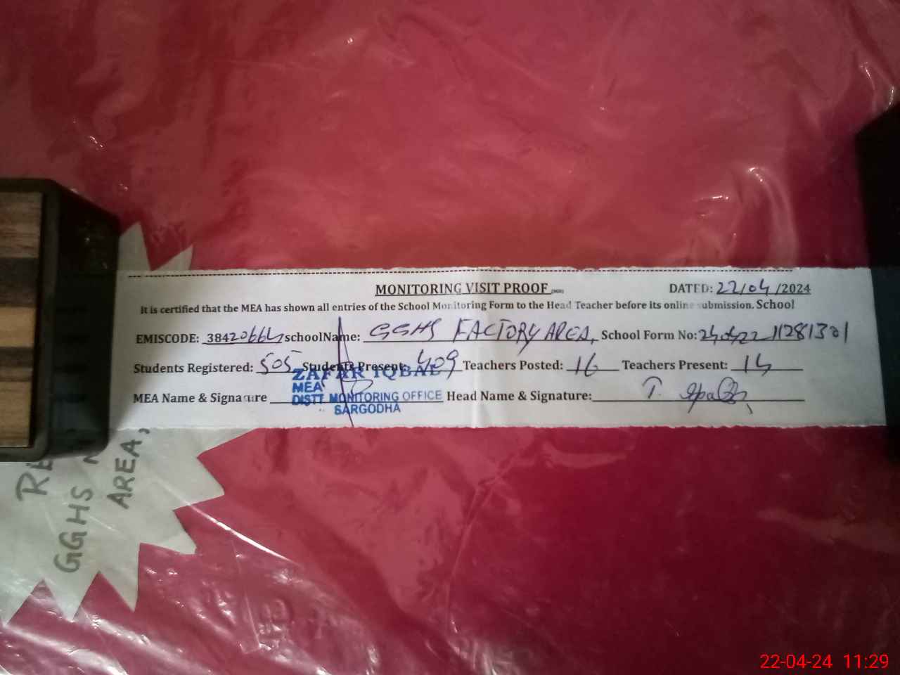 | EMIS Code: 38420664 | Name of School: GGHS FACTORY AREA SARGODHA | |||