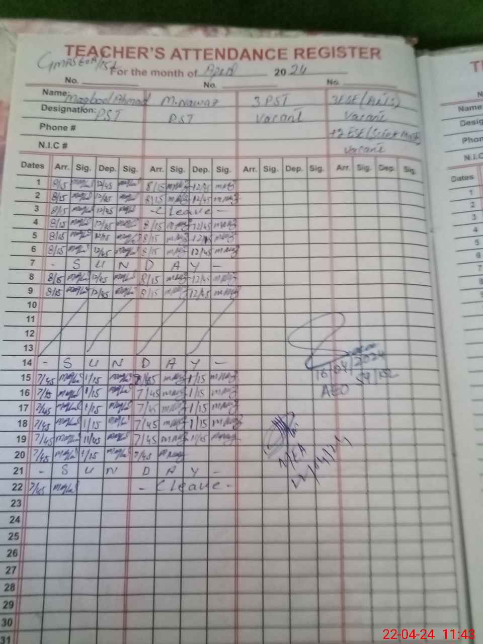 | Name: MA**** AH**** Designation: (School Headmaster's/Headmistress's) PST Phone/Cell Number: 03**** |