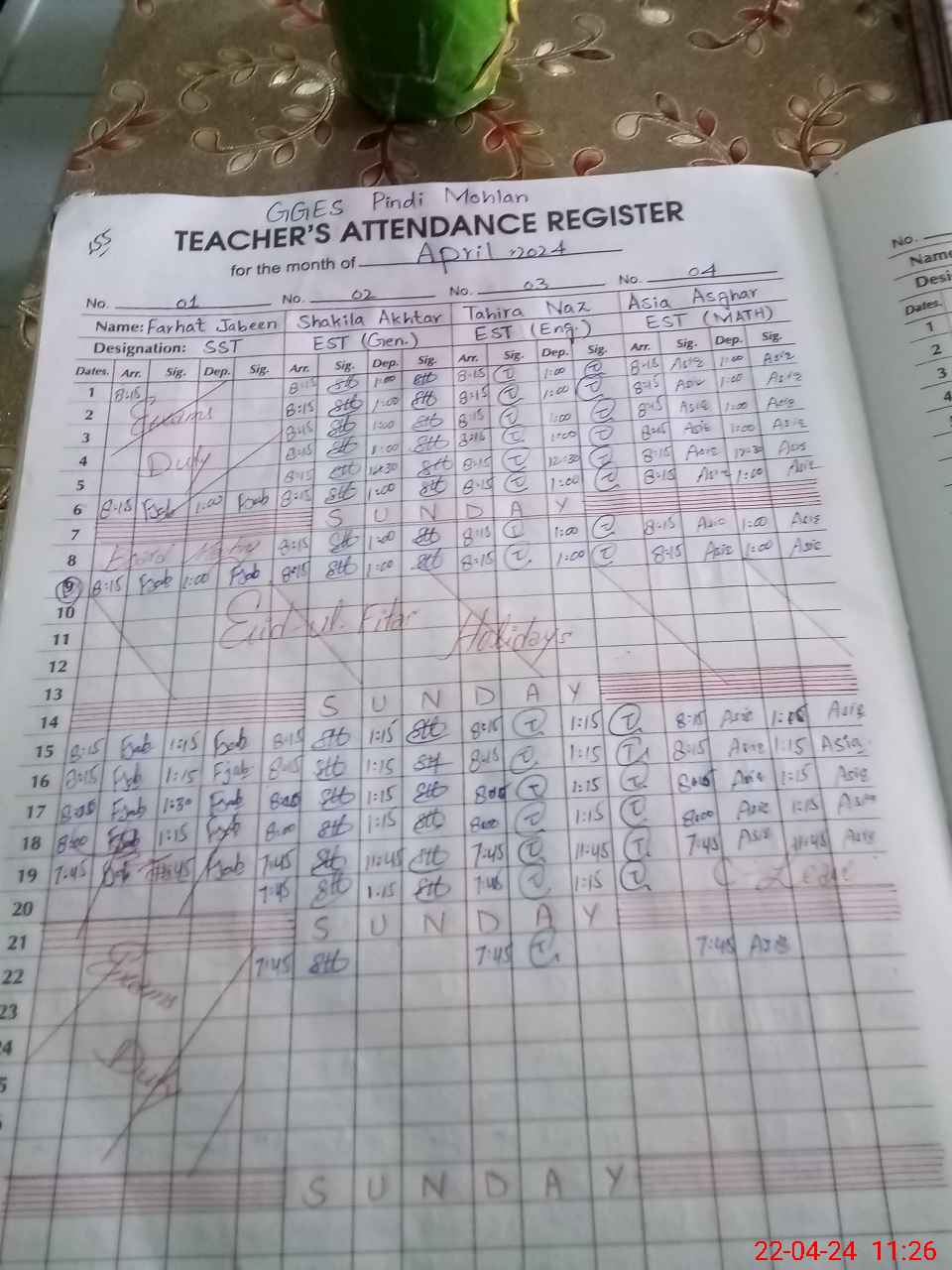 | 35**** | Fa**** Ja**** | SST | Regular | 0 | 0 | 0 | 0 | 0 | 0 | 0 | 0 | 0 | Exam Duty |