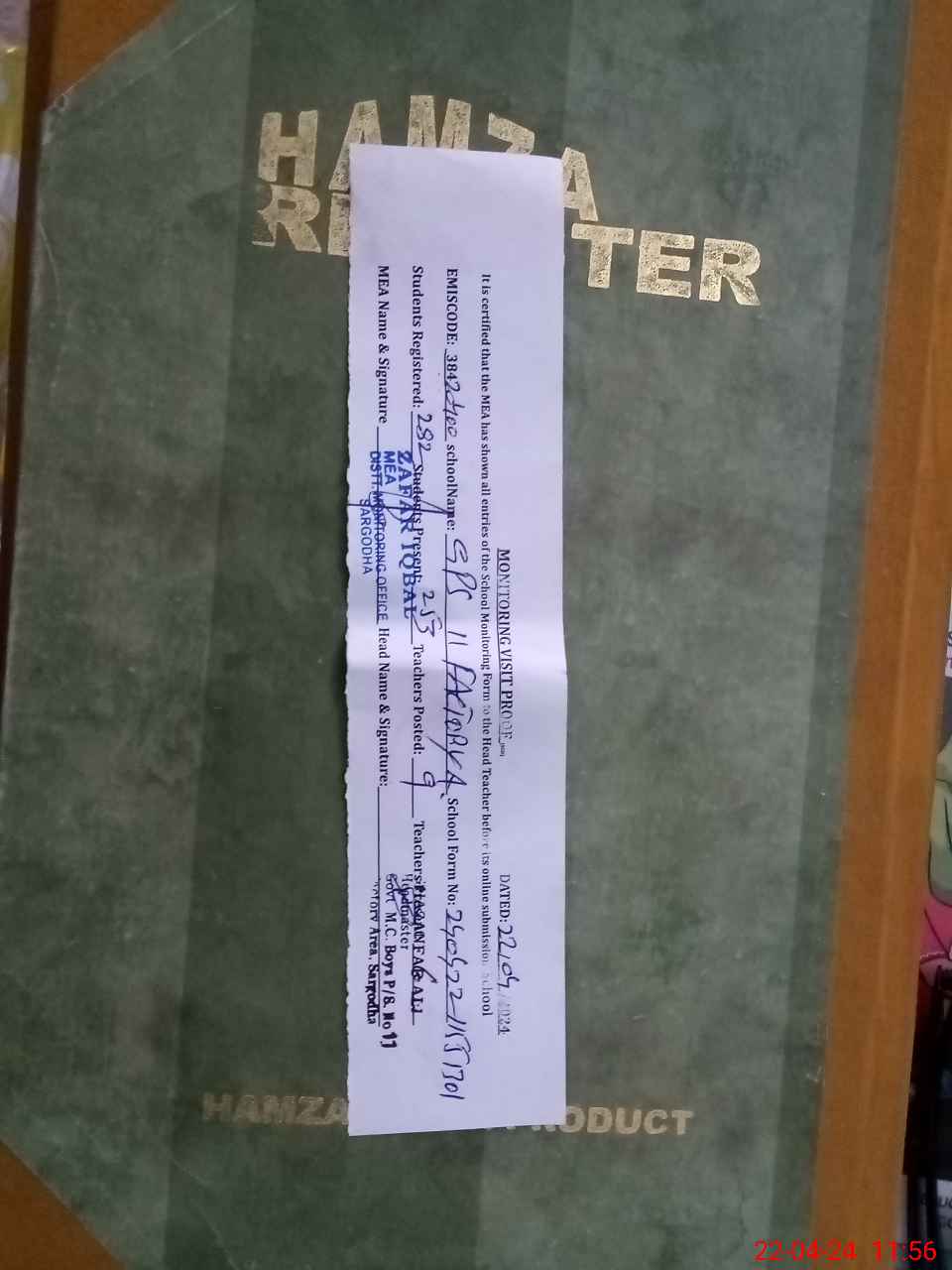 | EMIS Code: 38420400 | Name of School: GPS MC NO. 11 FACTORY AREA SARGODHA | |||