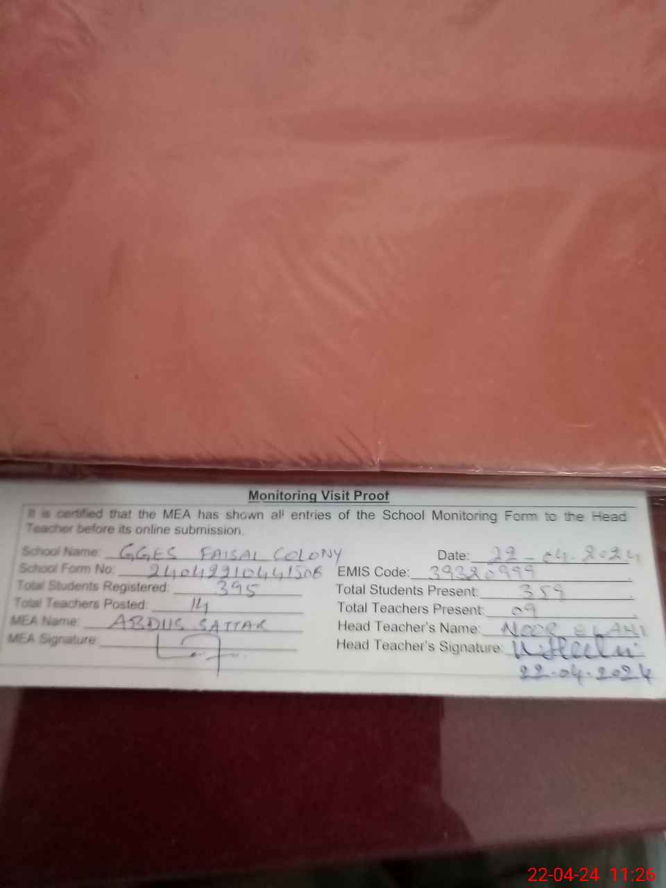 | Certified that this School was Inspected by the Undersigned MEA/DMO Today and the Information Stated Above is as Per Record. | |||||