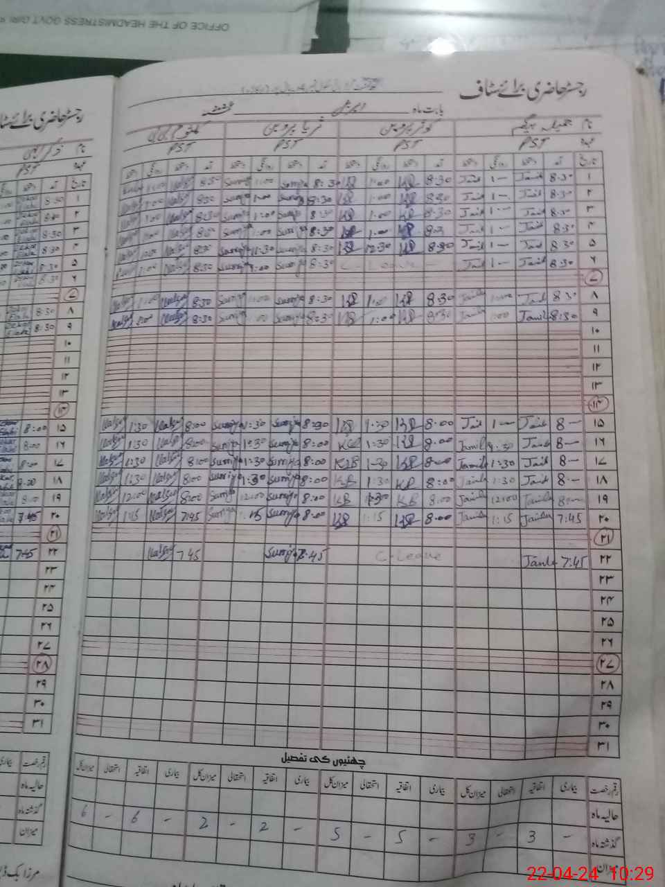 | CNIC | Full Name | Designation | R/C | Absence During Last Calender Month |