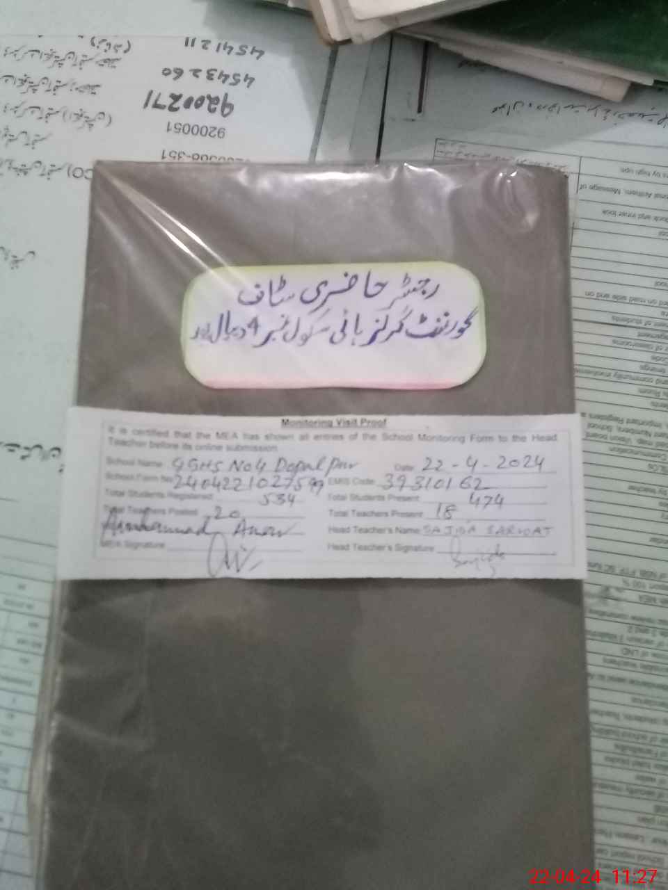 | Attendance Register | Head Teacher | MEA with School | Visit Proof |