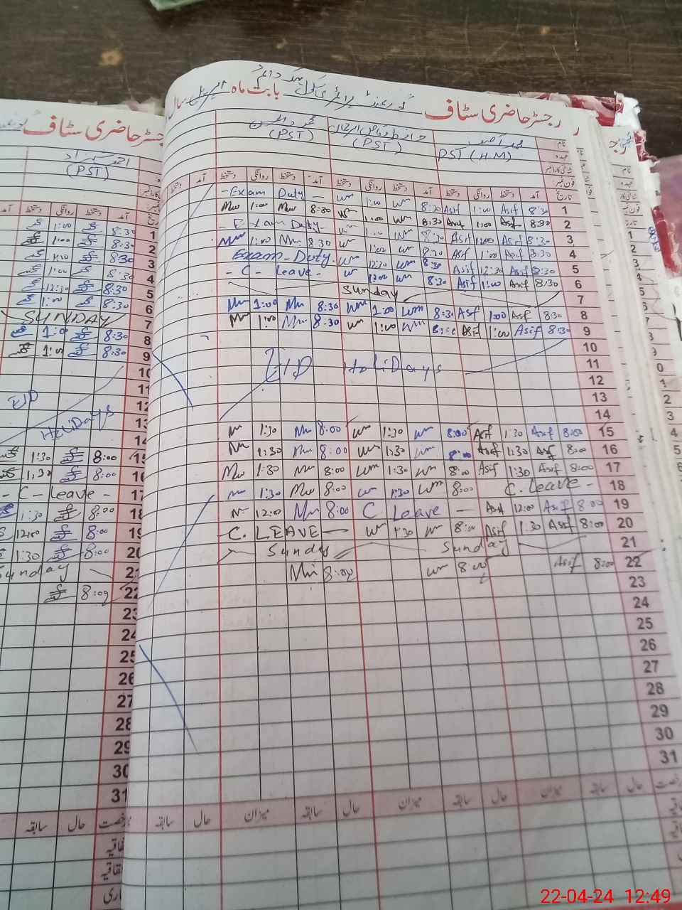 | CNIC | Full Name | Designation | R/C | Absence During Last Calender Month |