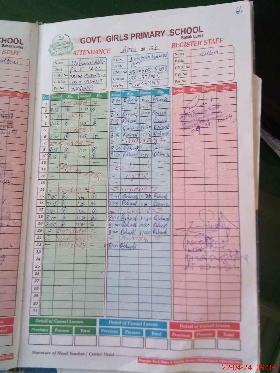 | Name: KA**** AK**** Designation: (School Headmaster's/Headmistress's) PST Phone/Cell Number: 03**** |