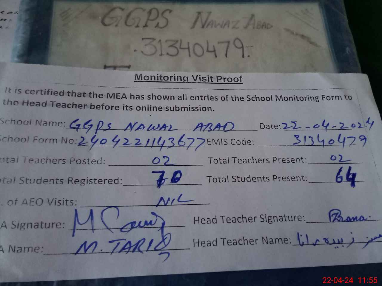 | EMIS Code: 31340479 | Name of School: GGPS NAWAZ ABAD | |||