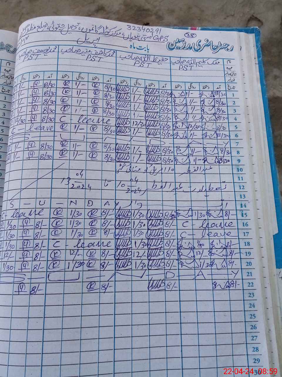 | CNIC | Full Name | Designation | R/C | Absence During Last Calender Month |