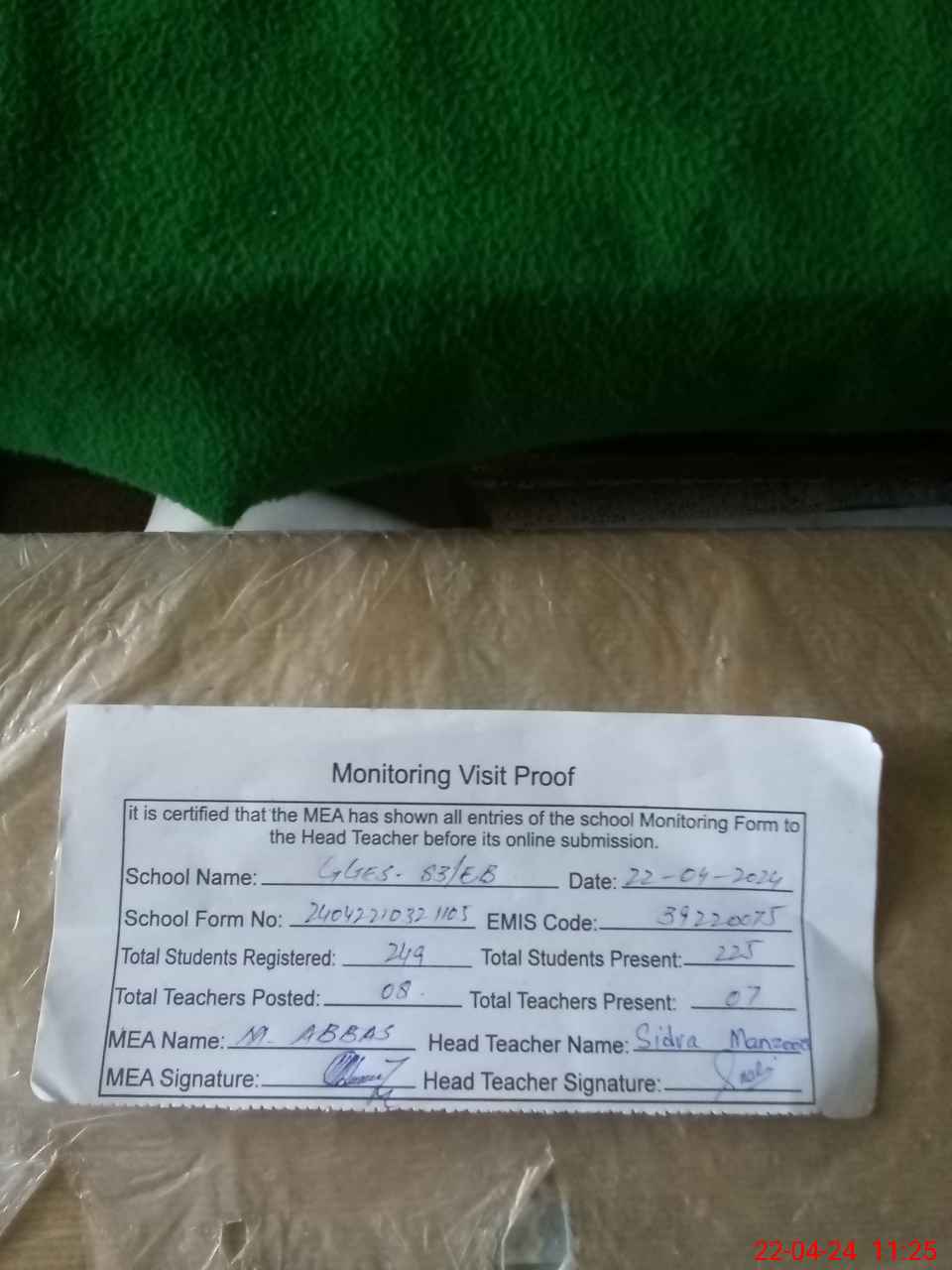 | Certified that this School was Inspected by the Undersigned MEA/DMO Today and the Information Stated Above is as Per Record. | |||||