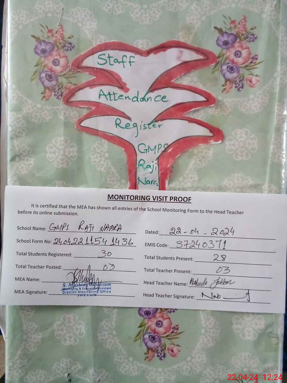 | Attendance Register | Head Teacher | MEA with School | Visit Proof |