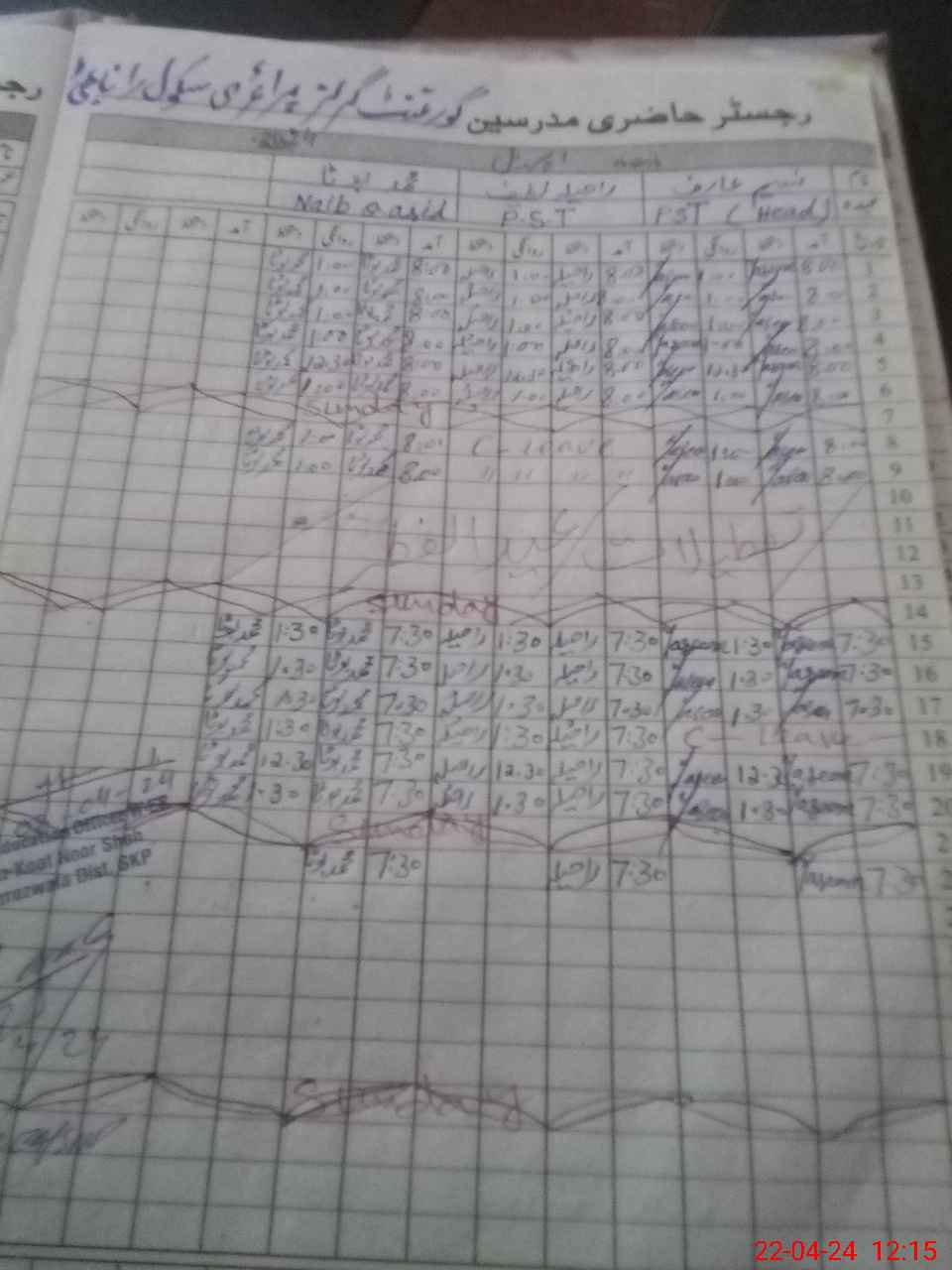 | CNIC | Full Name | Designation | R/C | Absence During Last Calender Month |