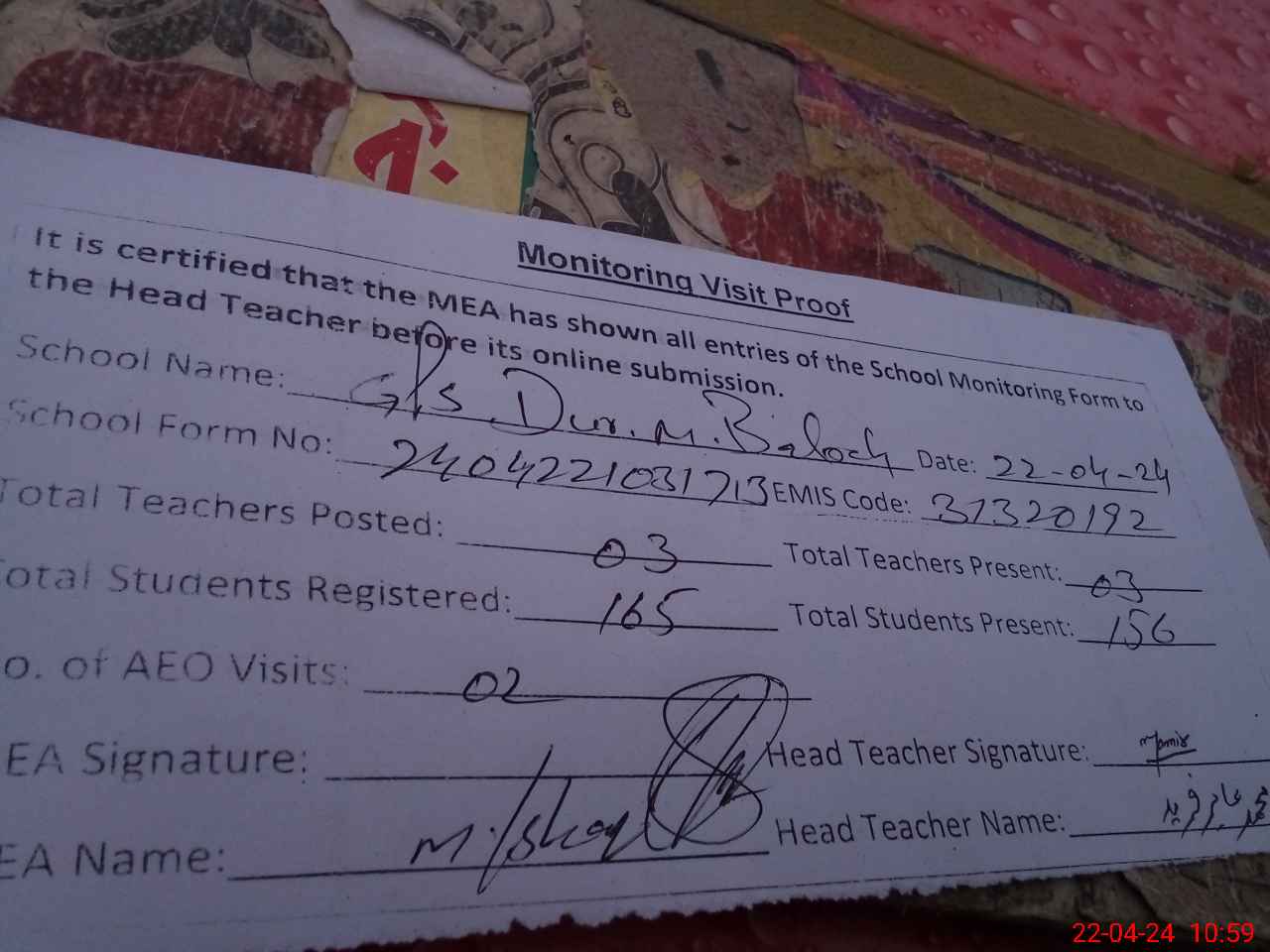 | EMIS Code: 31320192 | Name of School: GPS DUR MUHAMMAD BALOOCH | |||