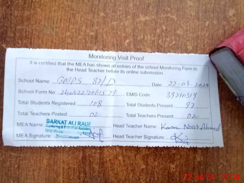 | EMIS Code: 39210319 | Name of School: GMPS 82 D | |||