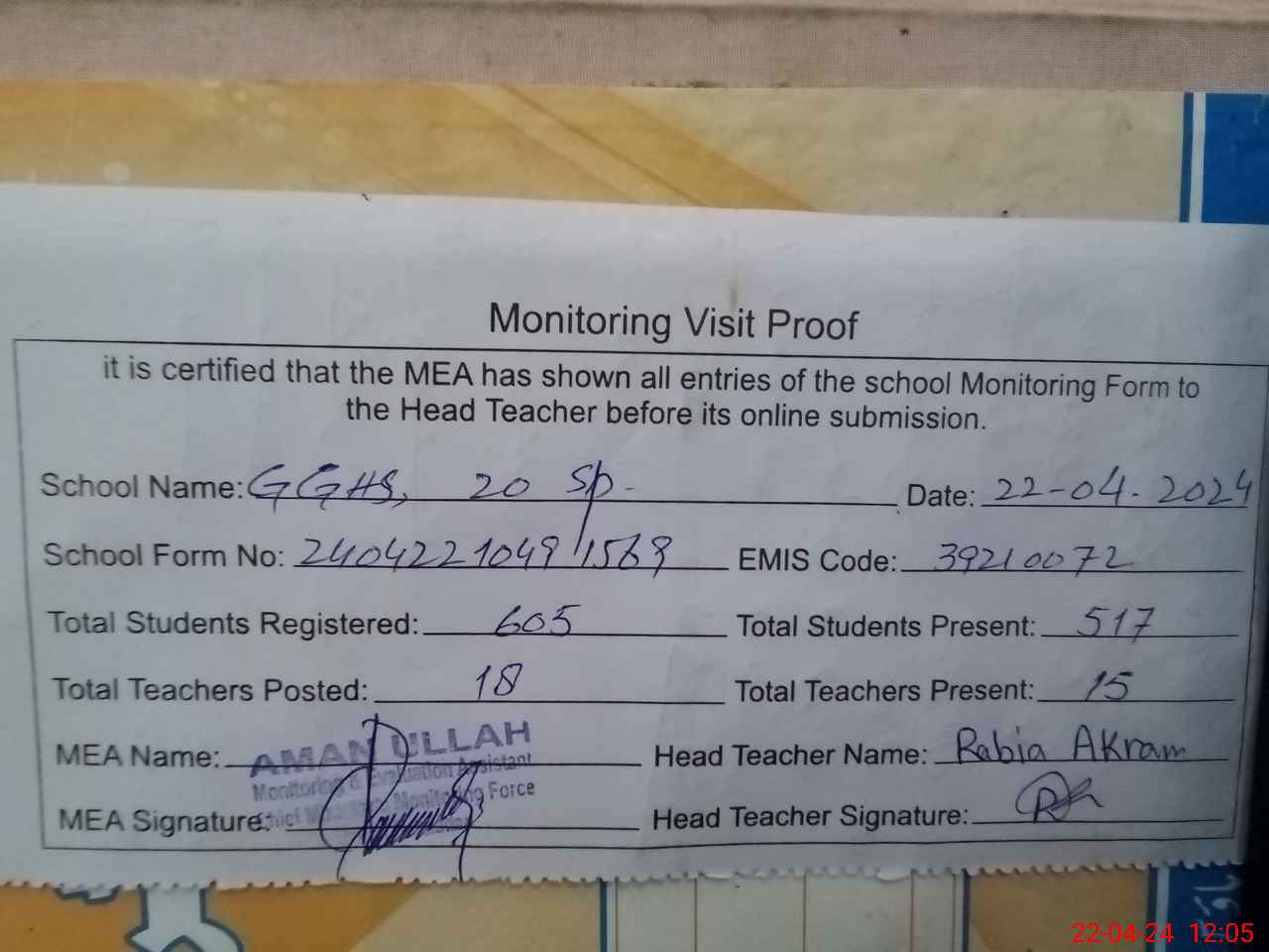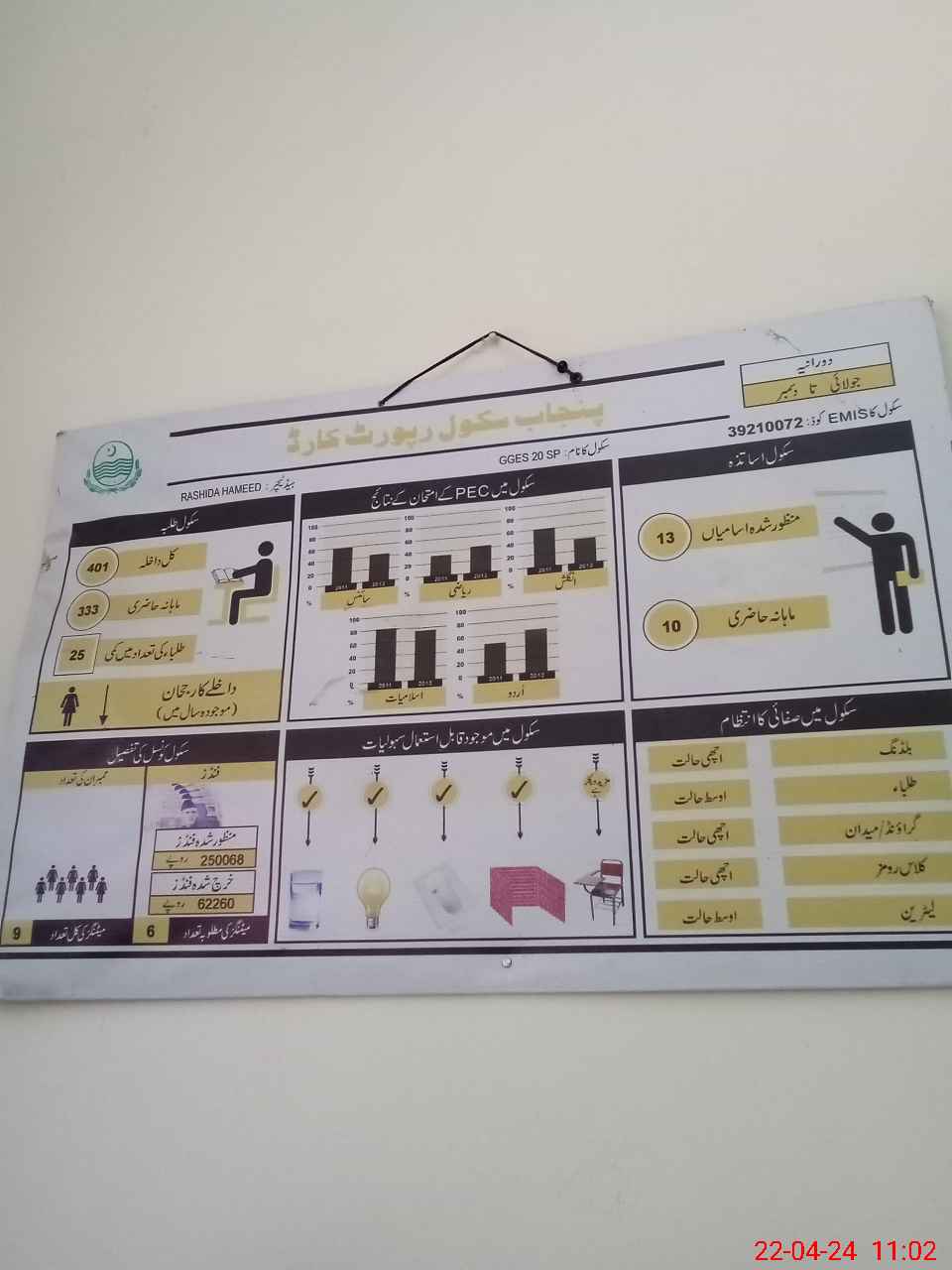 | EMIS Code: 39210072 | Name of School: GGHS 20 SP | |||