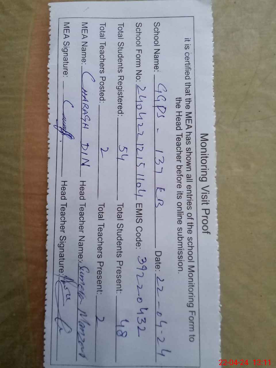 | EMIS Code: 39220432 | Name of School: GGPS 137 EB PO 127 EB | |||