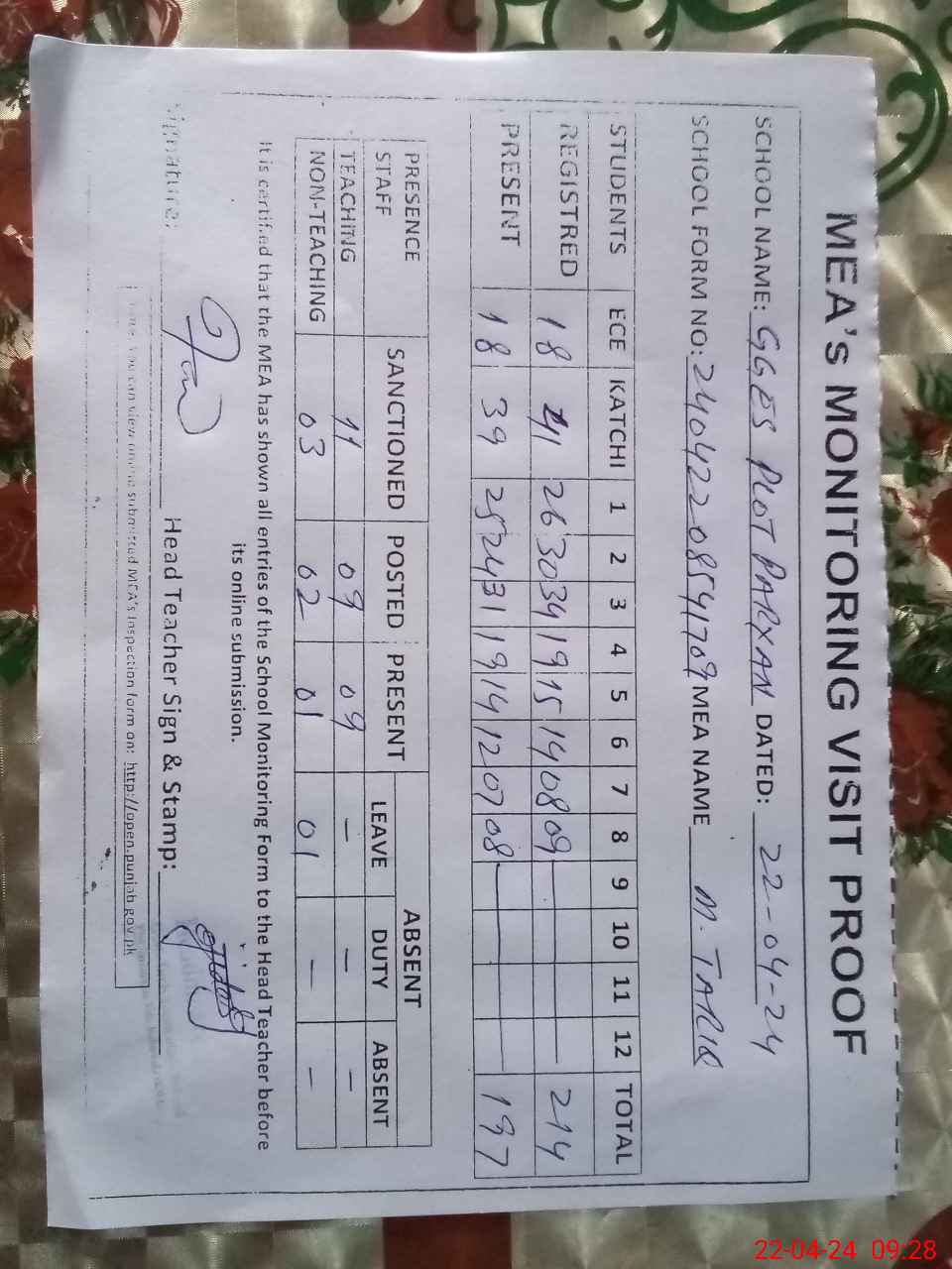 | EMIS Code: 36410107 | Name of School: GGES PLOT PARIAN WALA, SARAI SIDHU | |||