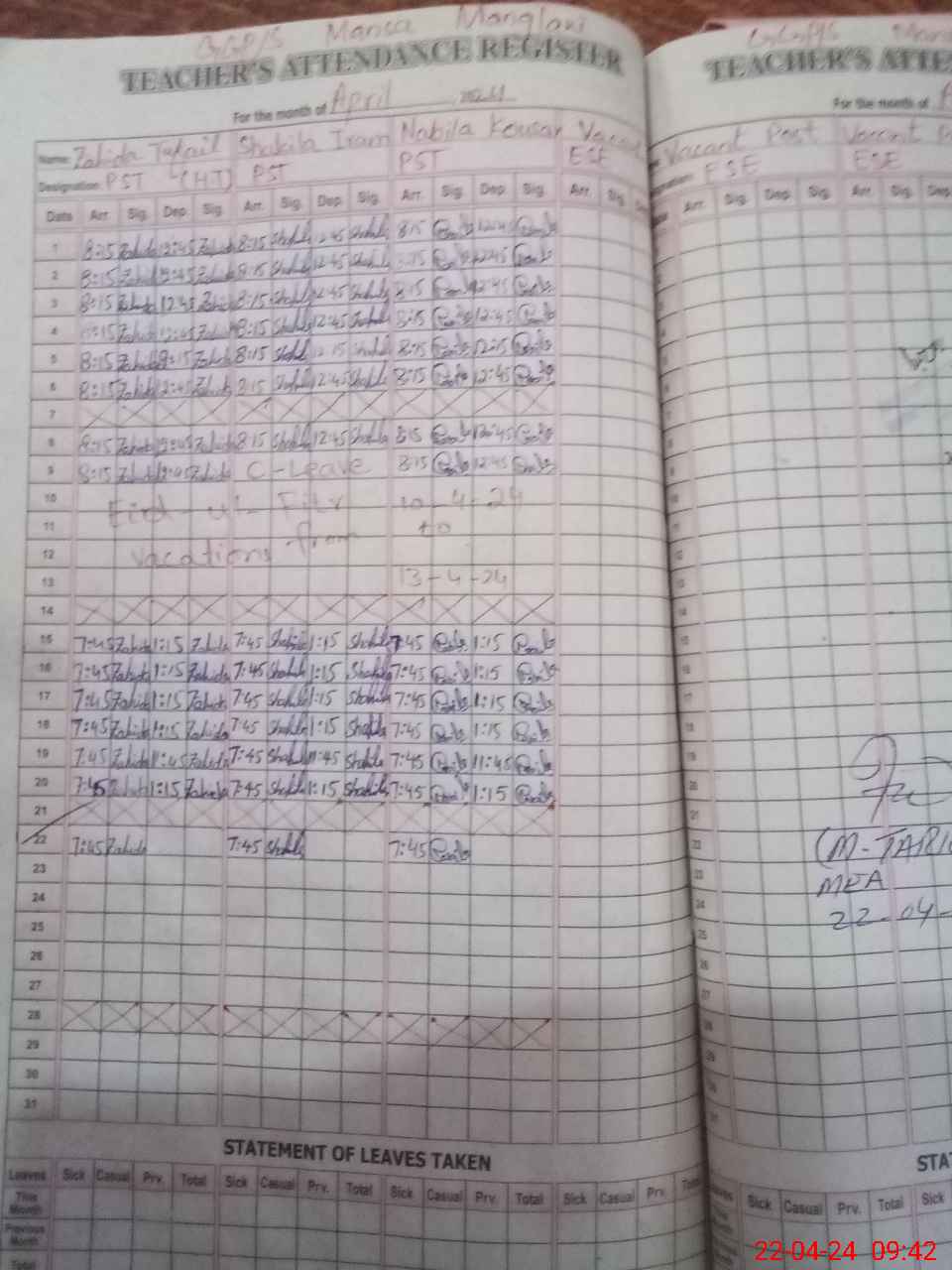 | Leave | Duty | Absent | Maternity | Medical | Ex- Pak |