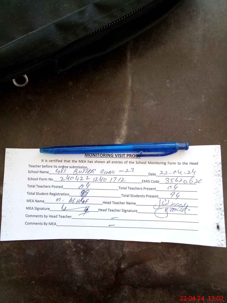 | EMIS Code: 35620620 | Name of School: GPS BUTTER NO. 23 | |||