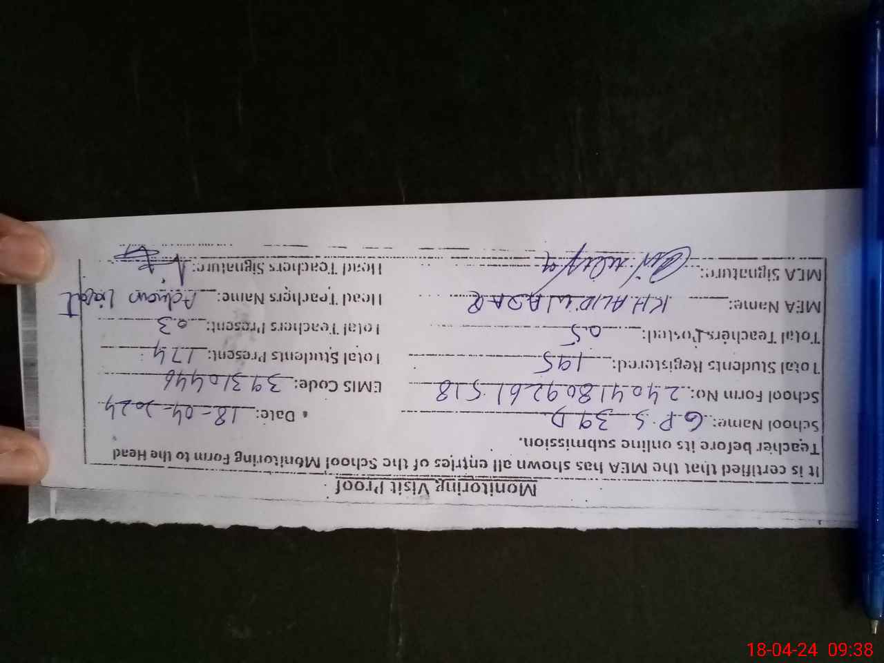 | Name: H.**** Ad**** Li**** Designation: (School Headmaster's/Headmistress's) PST Phone/Cell Number: 03**** |
