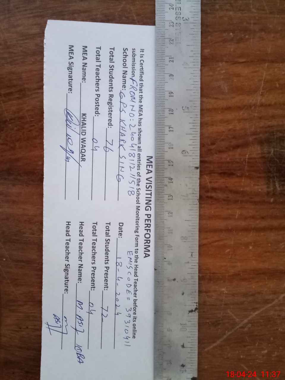 | EMIS Code: 39310411 | Name of School: GPS CHAK KHARAK SINGH | |||