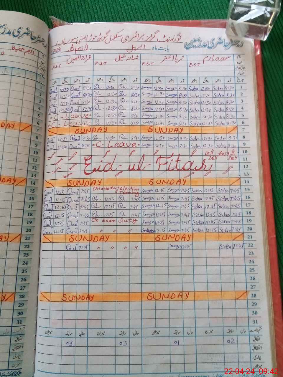 | 38**** | Sh**** Ja**** | PST | Regular | 2 | 0 | 0 | 0 | 0 | 0 | 0 | 0 | 2 | Exam Duty |