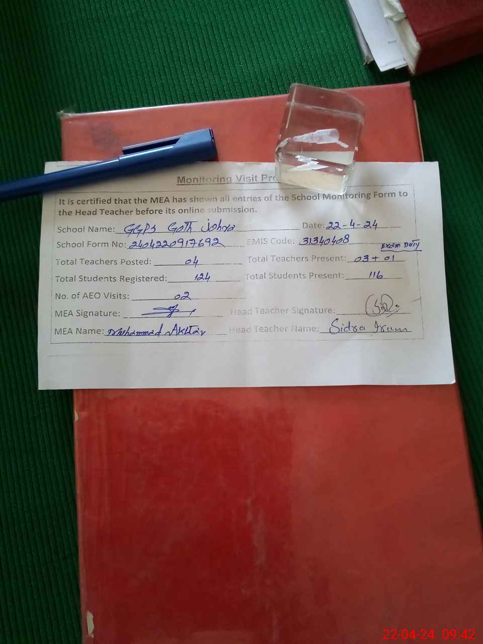 | EMIS Code: 31340408 | Name of School: GGPS GOTH JOHRA BASTI MASORIAN | |||