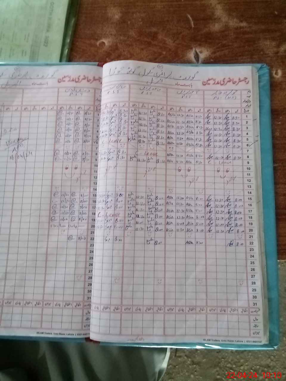 | CNIC | Full Name | Designation | R/C | Absence During Last Calender Month |